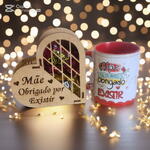 Kit presente Mãe - Com Caneca Premium e Coração Mdf "Mãe Obrigada por Existir"