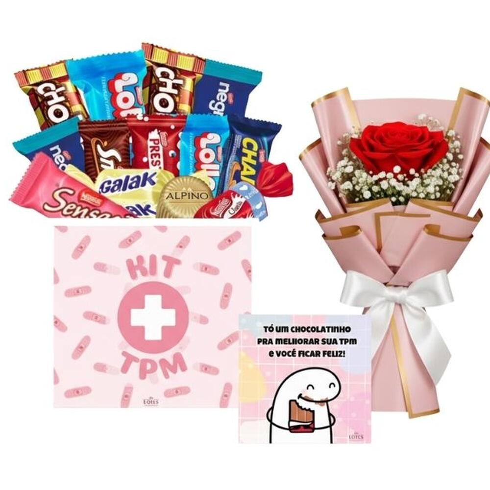 Um presente perfeito para trazer conforto e carinho nos dias mais difíceis! Um gesto delicado de carinho e amor, para adoçar o momento e proporcionar conforto. O Kit TPM combina delicadeza e cuidado, com itens escolhidos para relaxar e alegrar quem você ama, acompanhado por uma rosa que simboliza afeto e atenção, e deliciosos chocolates Perfeito para arrancar um sorriso, demonstrar cuidado e transformar o dia em algo especial! 💝 Ficha tecnica - Cachepô Temático - Chocolates - Rosa Unitária - Cartãozinho Informações Adicionais: Todos os produtos são finalizados com celofane e fita de cetim