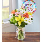 Encante sua casa ou escritório com este elegante vaso de vidro, cuidadosamente preenchido com um arranjo floral exuberante. O conjunto inclui um lírio radiante, uma margarida encantadora e uma folhagem verdejante, cuidadosamente organizados para proporcionar uma experiência visual agradável. Adicione um toque de beleza natural e frescor ao seu ambiente com esta peça decorativa única.