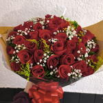 Encante-se com este deslumbrante buquê, cuidadosamente composto por 50 rosas vermelhas de plena beleza. Complementado de folhagens verdes vibrantes, cada detalhe desse buquê , é projetado para capturar a essência do requinte e da elegância. Uma opção perfeita para expressar amor, paixão e admiração em qualquer ocasião especial.