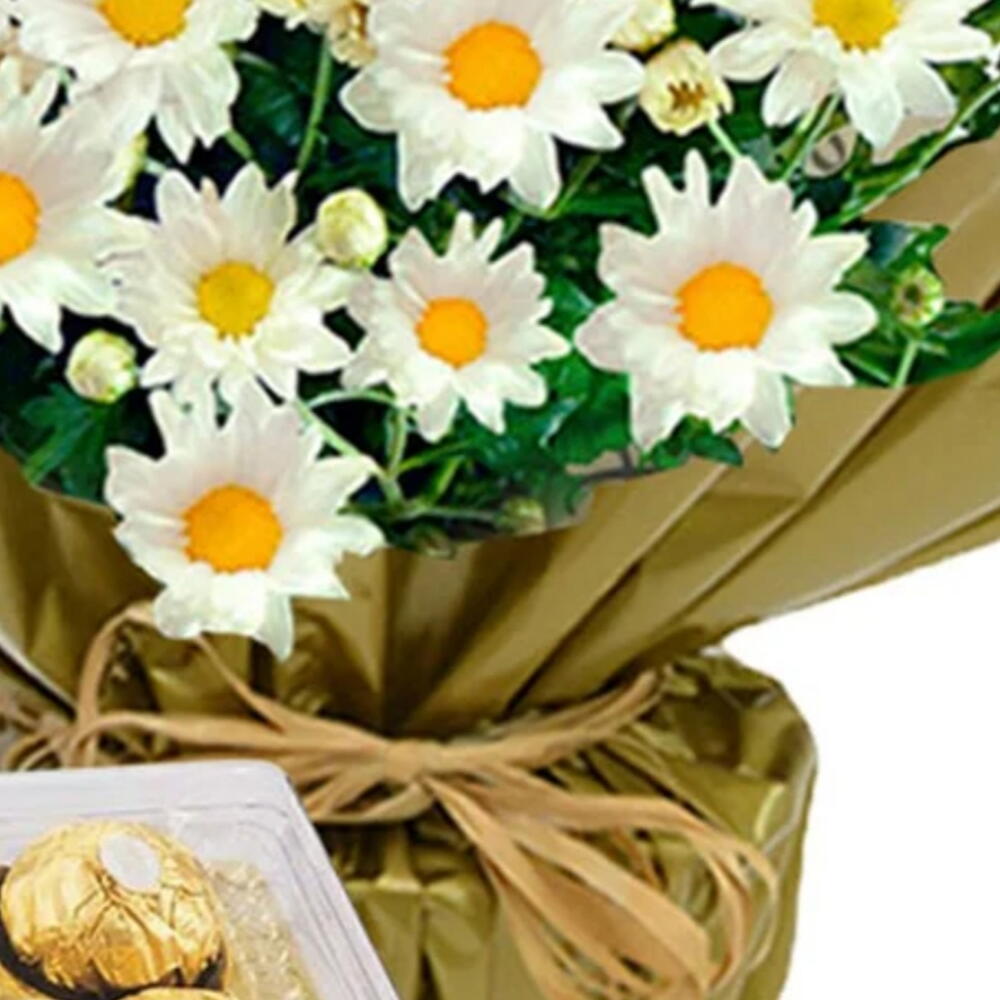 Um buquê de margaridas é uma ótima escolha para presentear alguém especial, especialmente quando combinado com deliciosos chocolates. As margaridas são flores clássicas, com suas pétalas brancas e amarelas trazendo uma sensação de felicidade e alegria. Quando combinadas com chocolates, a surpresa e o encanto são ainda maiores. O buquê de margaridas com chocolate é uma opção ideal para celebrar diversas ocasiões, desde um aniversário até uma data romântica. A combinação do buquê com os chocolates é uma forma de mostrar a importância que a pessoa tem em sua vida e demonstrar carinho e afeto. Além disso, é possível personalizar o presente com uma mensagem especial ou cartão, tornando-o ainda mais único e significativo. Se você deseja presentear alguém com um buquê de margaridas com chocolate, certamente irá deixá-la muito feliz e surpresa com esse presente incrível.