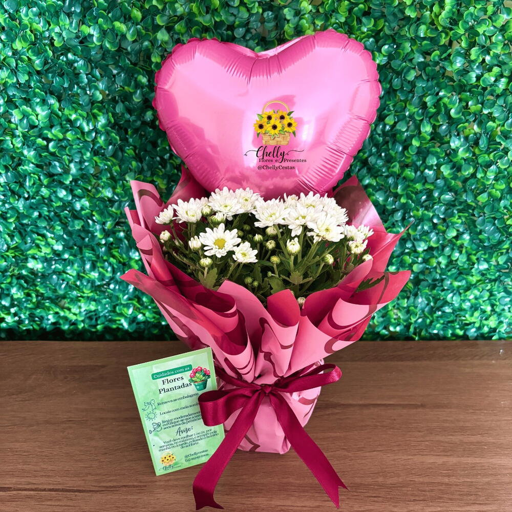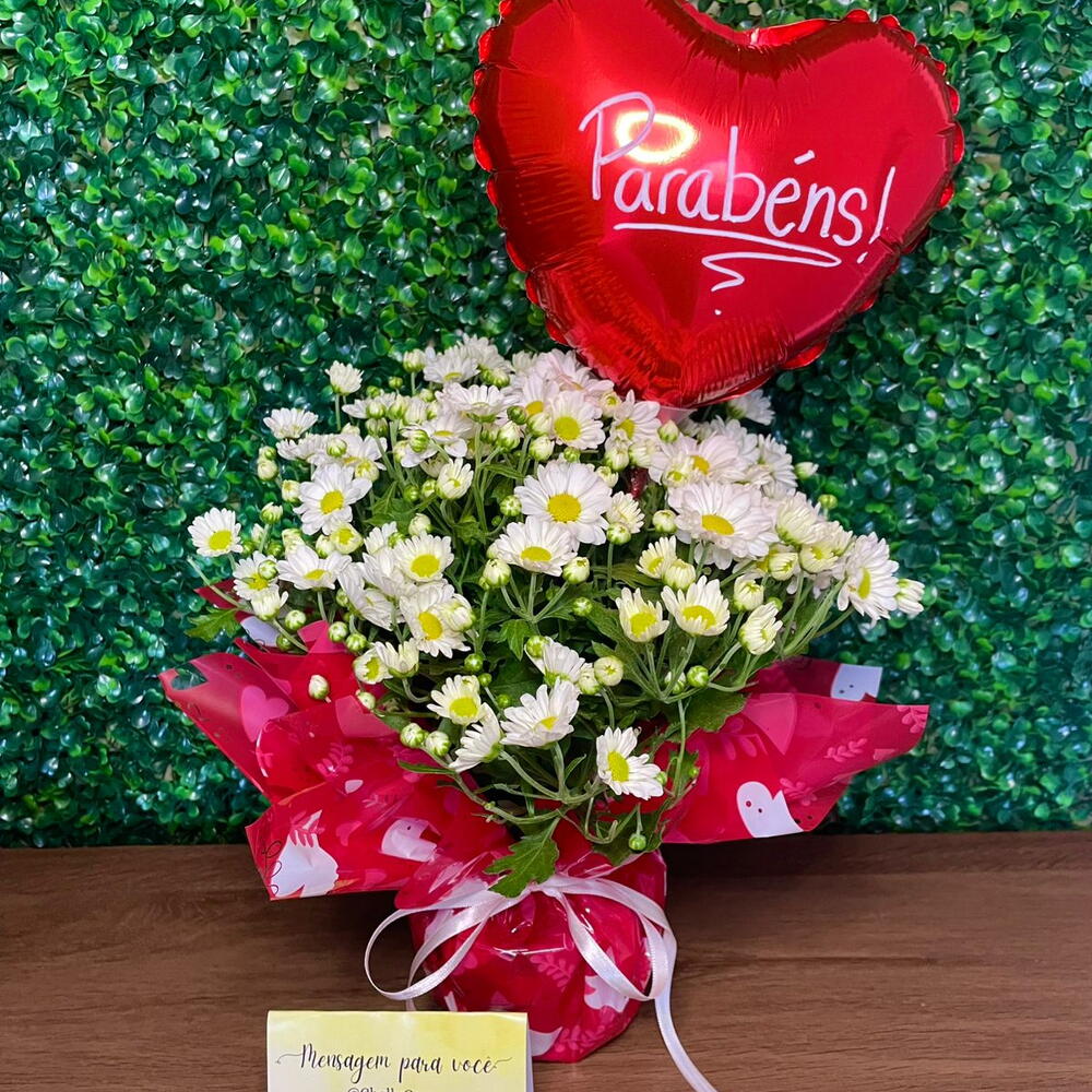 balão parabéns - 1 un. arranjo de margaridas em pote - 1 un.
