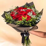 Este refinado buquê é constituído por 25 deslumbrantes rosas colombianas, complementado harmoniosamente com fokhagens e outros acessórios que embelezam ainda mais a composição. A embalagem elegante e um laço delicado contribuem para a estética do produto, fazendo dele a escolha perfeita para expressar sentimentos mais nobres.