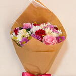 buque de flores mistas - 1 un. laço em cetim - 1 un. embalagem karft - 1 un.