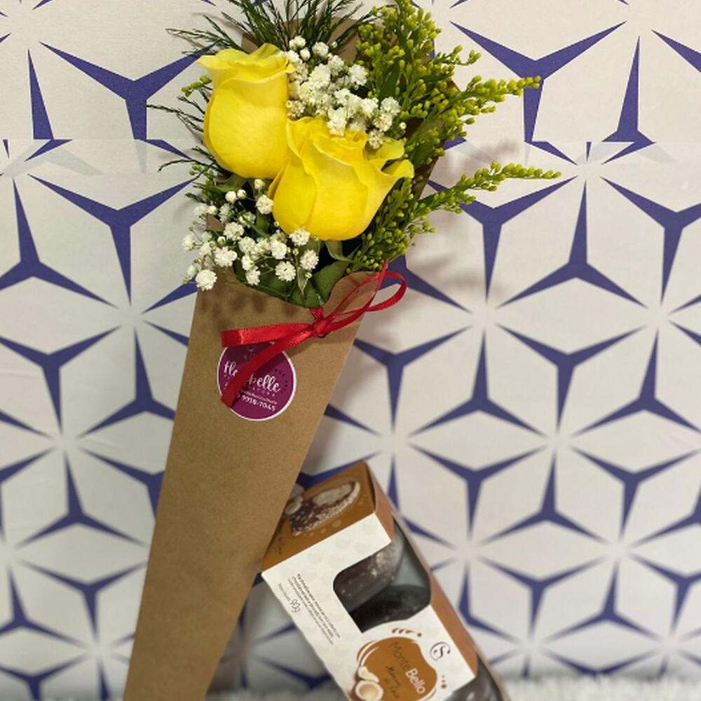 rosa - 2 un. embalagem karft - 1 un. doces cacau show - 3 un.
