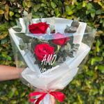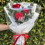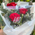Este encantador buquê é composto por três magníficas rosas colombianas que simbolizam encanto e elegância. Complementado com três folhagens de eucalipto cuidadosamente escolhidas que adicionam uma textura única e aromática ao conjunto. Lindamente apresentado numa elegante embalagem para presente, acompanhada por um laço de cetim de 35 cm, que adiciona um toque final de sofisticação. Seria o presente perfeito para demonstrar seu carinho e apreço em qualquer ocasião.