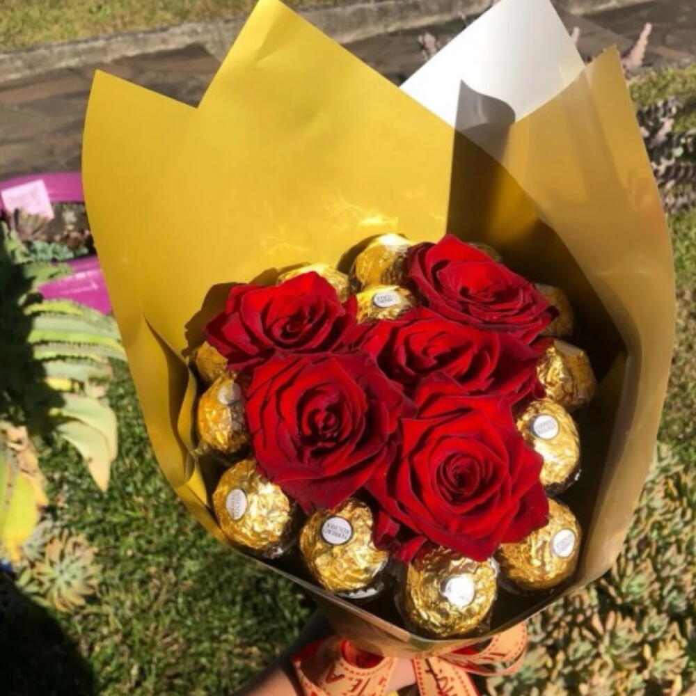 Este delicioso Presente com Chocolate é perfeitamente composto por cinco rosas, adicionando um toque de elegância. Vem com quinze bombons Ferrero Rocher, um dos chocolates mais adorados em todo o mundo, proporcionando uma combinação irresistível para satisfazer os amantes de chocolate. O presente é cuidadosamente embalado em uma embalagem de alta qualidade (1 unidade) e decorado com um laço (1 unidade) para torná-lo ainda mais especial. Este presente cheio de sabor e amor é a maneira perfeita de demonstrar os seus sentimentos em qualquer ocasião.