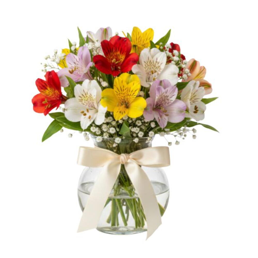 Mini Astromelias Coloridas no Vaso