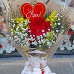 Mini Buquê C/ 1 Rosa e Plaquinha Te Amo