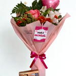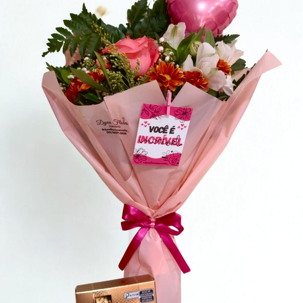 Este encantador mini buquê vem primorosamente acompanhado por uma única rosa cor de rosa, repleta de amor e sentimentos amáveis que irão conquistar qualquer coração. Complementando a beleza da rosa, encontram-se delicados adornos florais, melhorando ainda mais sua elegância. Um charmoso laço rosa e uma embalagem cuidadosamente selecionada envolvem este buquê, tornando-o um presente perfeito para qualquer ocasião. Para finalizar a magia e doçura deste conjunto, um fascinante balão em forma de coração está incluso, deixando o surpreendido ainda mais maravilhado.