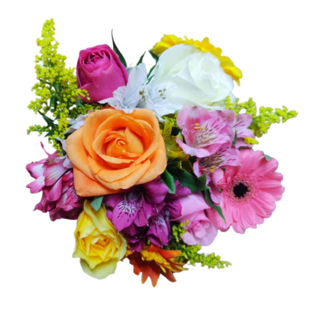 gérbera - 1 un. astroméria - 1 un. 4 rosa de diferentes cores - 1 un.