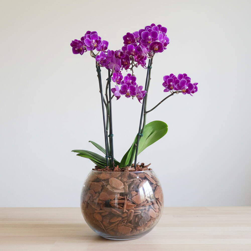Esta elegante orquídea em tom violeta intenso traz sofisticação e delicadeza para qualquer ambiente. Suas flores pequenas e abundantes formam uma cascata encantadora que atrai todos os olhares. Plantada em um vaso de vidro com cascas naturais, ela combina perfeitamente com interiores modernos e aconchegantes. É uma opção duradoura que simboliza beleza, harmonia e carinho. Ideal para presentear em aniversários, agradecimentos ou para decorar sua casa com um toque especial. De fácil cuidado, mantém sua aparência fresca por muito tempo. Um presente refinado que transmite bom gosto e emoção em cada detalhe.