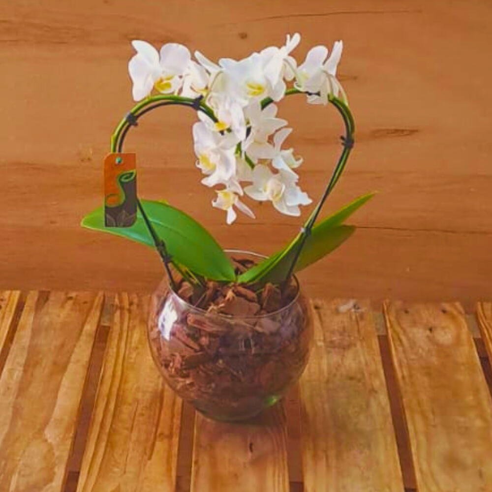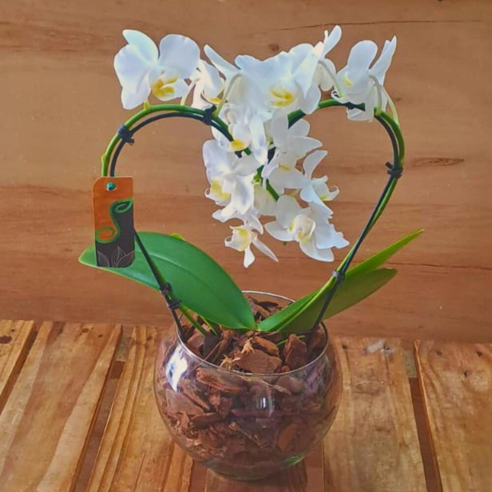 Mini Orquídeas Branca Phalaenopsis Formato Coração – Um presente delicado que encanta e emociona! Surpreenda com esta linda mini orquídea branca Phalaenopsis, cuidadosamente apresentada em um vaso aquário de vidro. O charme fica por conta das orquideas entrelaçadas, formando um elegante formato de coração, perfeito para simbolizar amor e carinho. Detalhes do Produto: Orquídea Phalaenopsis branca, símbolo de pureza e elegância. Vaso aquário de vidro transparente que valoriza a beleza natural da planta. Casca de pinus que adiciona um toque especial . Medidas: 35 cm de altura e 20 cm de diâmetro — tamanho ideal para decorar qualquer ambiente. Por que escolher a Mini Orquídea Phalaenopsis em formato coração? Este arranjo é ideal para quem busca um presente sofisticado e cheio de significado. Seja para datas especiais como Dia dos Namorados, aniversários ou simplesmente para demonstrar afeto, essa orquídea traz um toque de delicadeza e estilo. Benefícios: Presente exclusivo e elegante que dura por muito tempo. Decoração charmosa que traz vida e frescor ao ambiente. Fácil de cuidar, perfeita para quem ama plantas, mesmo sem muita experiência. Garanta já a sua Mini Orquídea branca Phalaenopsis em formato coração e encante com um gesto cheio de amor e beleza natural!
