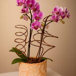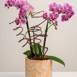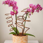 Esta planta espetacular apresenta hastes florais repletas de flores que valoriza ainda mais a exuberância da floração. A orquídea está acondicionada em um vaso de cerâmica charmoso, com um delicado padrão de folhas em relevo na cor branca. O substrato é finalizado com casca de pinus, garantindo um visual sofisticado e natural. Ideal para adicionar um toque de luxo, cor e sofisticação a qualquer ambiente, seja na sala de estar, escritório ou como um presente memorável. Produto exclusivo da Flores da Vila.