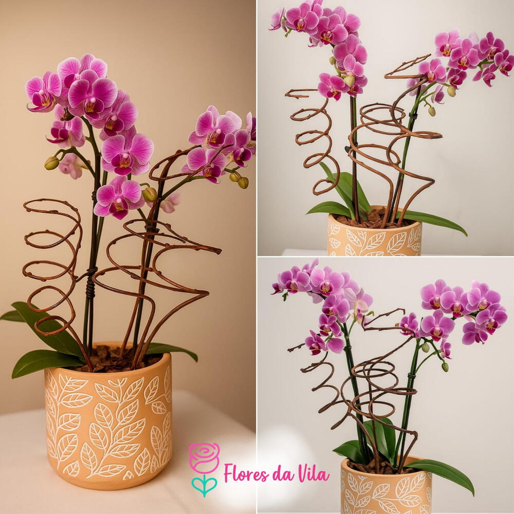 Esta planta espetacular apresenta hastes florais repletas de flores que valoriza ainda mais a exuberância da floração. A orquídea está acondicionada em um vaso de cerâmica charmoso, com um delicado padrão de folhas em relevo na cor branca. O substrato é finalizado com casca de pinus, garantindo um visual sofisticado e natural. Ideal para adicionar um toque de luxo, cor e sofisticação a qualquer ambiente, seja na sala de estar, escritório ou como um presente memorável. Produto exclusivo da Flores da Vila.