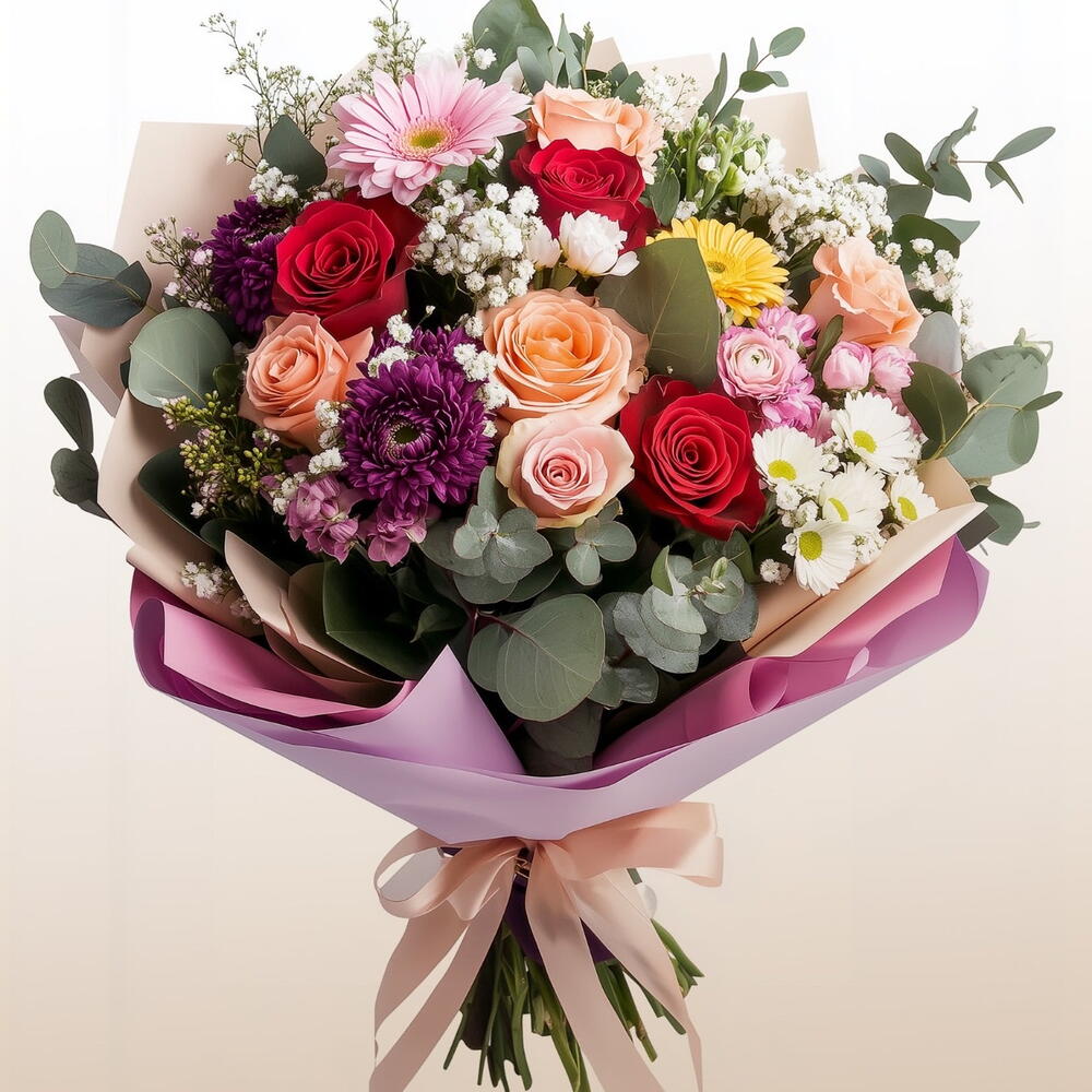 Este buquê exclusivo é composto por um mix deslumbrante de flores do campo, ressaltadas pelo aroma revigorante de eucalipto. Reunindo 20 unidades de folhagens e complementos, cada detalhe é habilmente arranjado para destacar a beleidade natural destas flores. O buquê é cuidadosamente embalado em uma embalagem elegante e finalizado com um lindo laço, pronto para ser entregue como o presente perfeito. Finalmente, um buquê que é tão especial quanto a pessoa que o receberá!