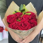 Este buquê deslumbrante apresenta 8 rosas vermelhas encantadoras, complementadas por três unidades de folhagem de primeira qualidade. Cada elemento foi criteriosamente selecionado para proporcionar uma composição harmoniosa e elegante. Este buquê é a escolha perfeita para expressar sentimentos de amor, paixão e respeito.