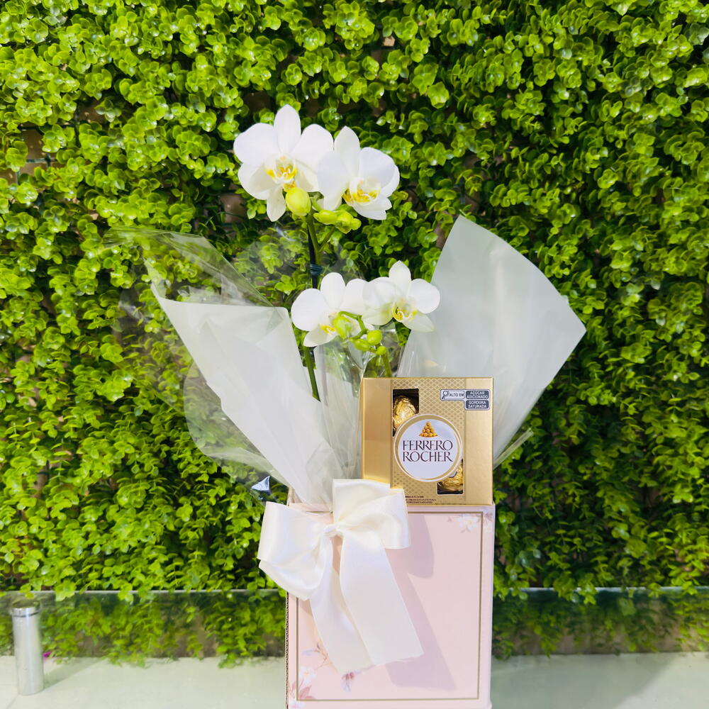 Surpreenda com um gesto delicado e cheio de charme! 💐 1 Orquídea natural, símbolo de elegância, amor e admiração 🍫 1 Caixa de Ferrero Rocher com 4 bombons, um toque irresistível de sabor e sofisticação Perfeito para presentear com requinte em aniversários, agradecimentos ou qualquer ocasião especial! 💝