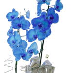 Encante com a sofisticação desta Orquídea azul, cuidadosamente acomodada em um vaso de vidro transparente. A composição traz beleza atemporal e um toque moderno para qualquer ambiente. As raízes são acomodadas sobre uma base de musgo e casca de pinus, promovendo um visual orgânico e requintado.