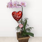 Presenteie com delicadeza e elegância! Esta linda orquídea vem acompanhada de um charmoso balão em formato de coração, ideal para expressar carinho, amor e afeto em datas especiais. A composição ainda conta com um toque verde ornamental e está disposta em um elegante vaso rústico, perfeito para decorar qualquer ambiente. Uma escolha sofisticada para surpreender quem você ama!