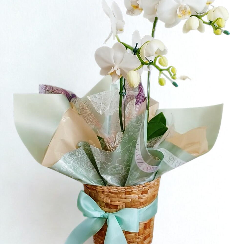 A Orquídea Springs é uma exuberante orquídea phaleanopsis que evoca a beleza serena da primavera. Com suas hastes elegantes e flores refinadas, é um presente que transmite uma mensagem de frescor e renovação. A orquídea é cuidadosamente disposta em um vaso, realçando sua graciosidade. Este arranjo floral é ideal para iluminar qualquer espaço com uma atmosfera vibrante e elegante. Presenteie alguém especial com a beleza duradoura e a delicadeza desta orquídea que é um verdadeiro tributo à estação das flores.