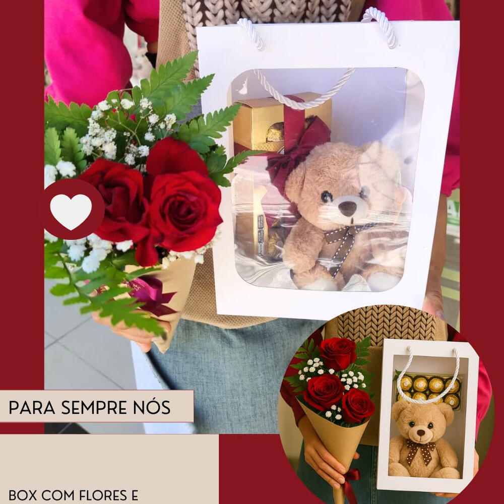 Este pacote de presente com chocolate celebra a doçura e o amor em todos os detalhes. Ele conta com três deslumbrantes rosas e uma embalagem artesanal Kraft, acrescentando um toque rústico e charmoso. Cada pacote é cuidadosamente acomodado em uma sacola e vem com um adorável ursinho, perfeito para expressar seu afeto. E claro, não poderíamos esquecer a estrela do pacote: uma caixa tentadora com 8 unidades de Ferrero Rocher. Um presente verdadeiramente caloroso e convidativo para alguém especial.
