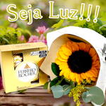 embalagem - 1 un. folhagens - 1 un. girassol - 1 un. laço - 1 un. chocolate ferrero rocher 50gr - 1 un.