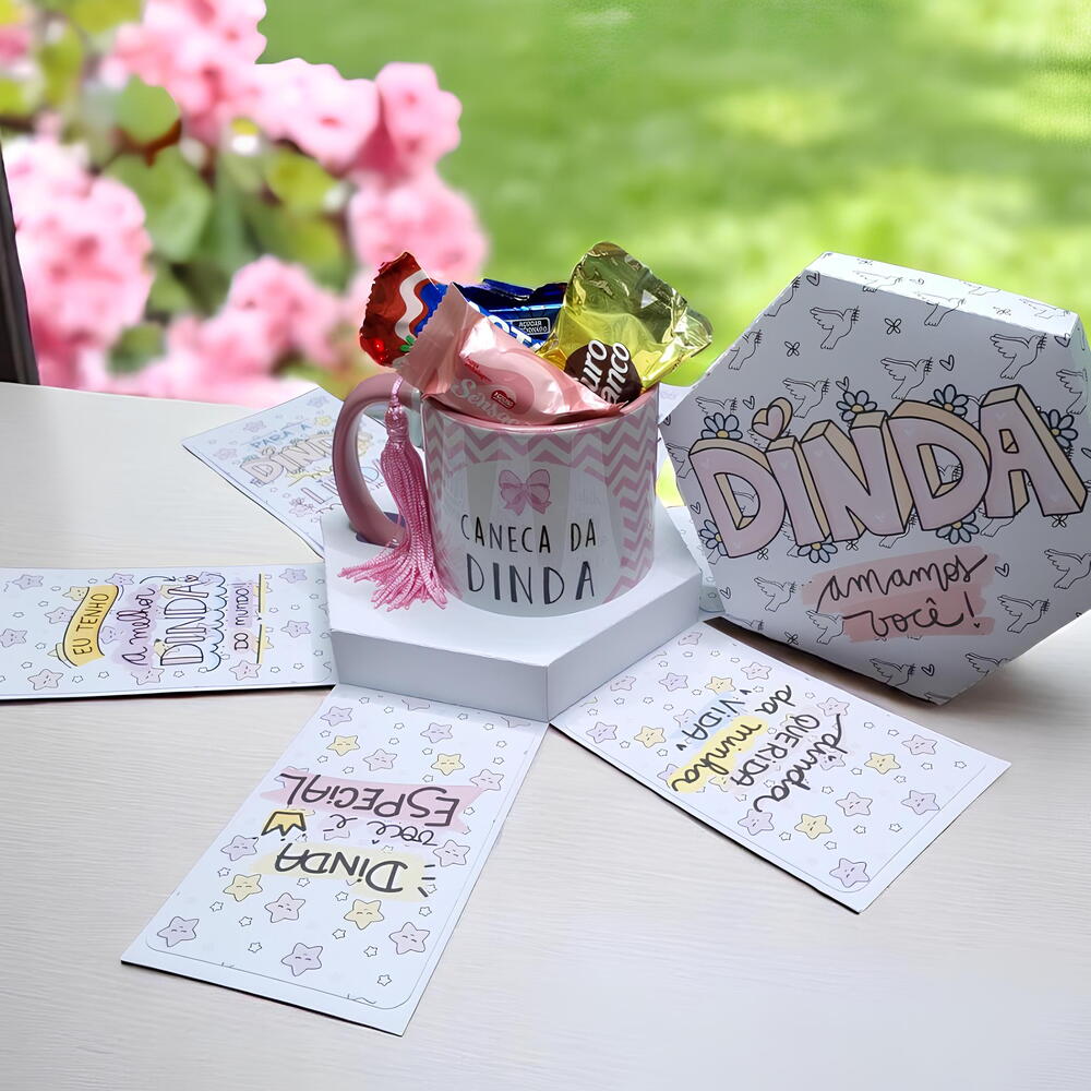 Presente Dinda: Caneca na Caixa Explosão com Chocolates