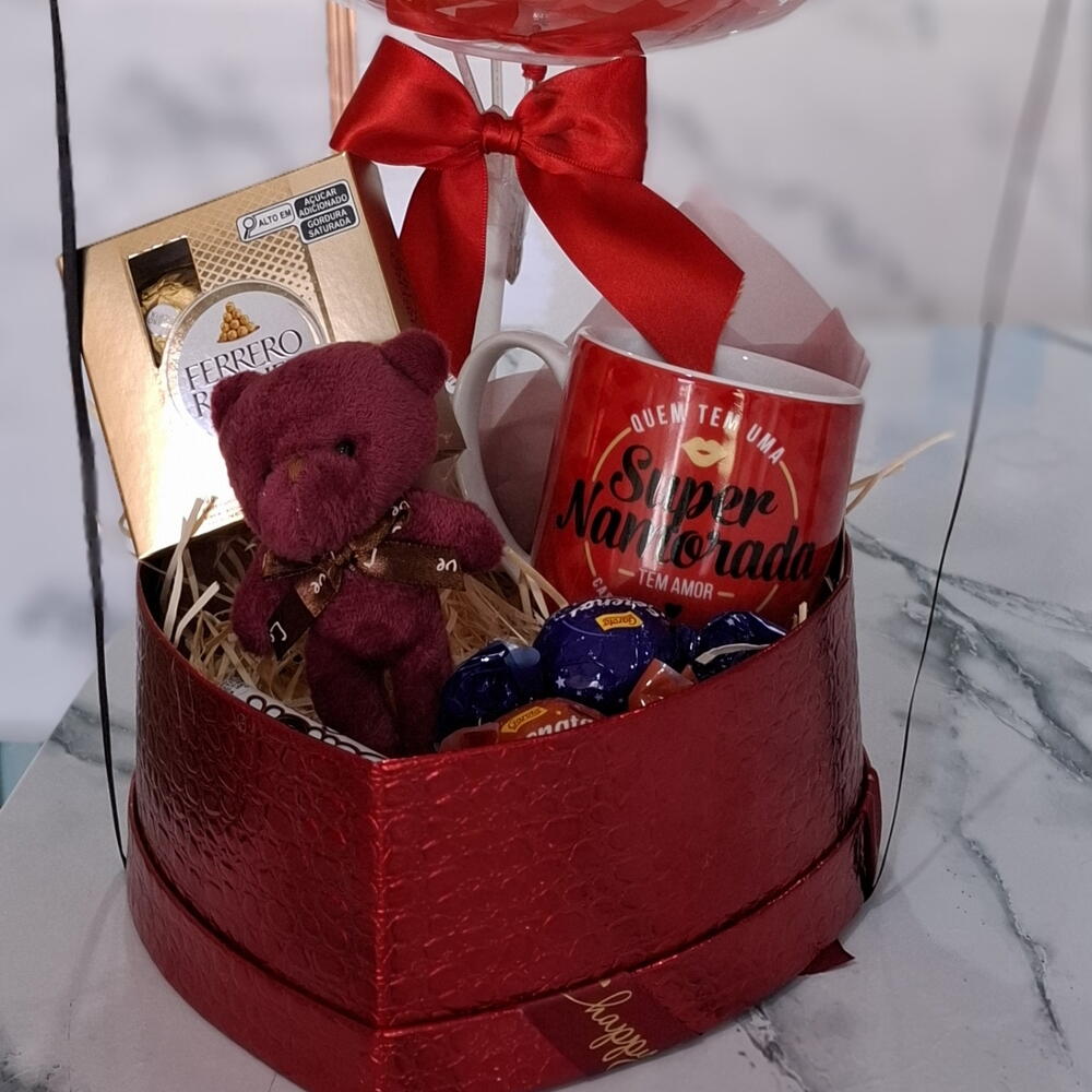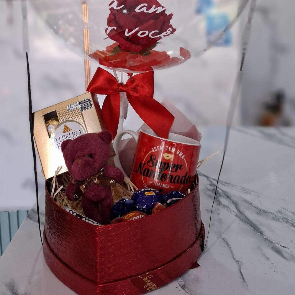 Impressione seu ente querido com nosso Kit de Presente! Este pacote exclusivo inclui 1 Balão bolha personalizado para fazer uma surpresa única e memorável. Dentro da bela Caixa cartonada com tampa coração, encontrará 1 glamorosa xícara de porcelana premium para café e um adorável mini urso com o adesivo love para expressar seu carinho. E para adoçar ainda mais o presente, incluímos uma caixa de Ferrero Rocher com 4 irresistíveis bombons. Um kit de presente perfeito para tornar qualquer ocasião especial.