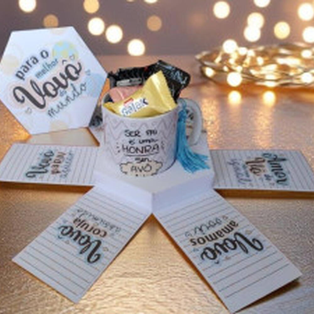 Surpreenda seu Avô com nossa caneca na Caixa Explosão com deliciosos Chocolates! Mais do que apenas uma caneca, é uma explosão de estilo e sentimentos. Características que Encantam: Caixa Surpreendente: Embalada em uma caixa especialmente projetada para criar um momento mágico. A abertura é uma revelação de alegria. Adornada com lindas mensagens, é o presente perfeito para essa pessoa que é tão especial. Momentos Especiais em Cada Gole: Seja para começar o Dia com energia ou relaxar à noite, cada momento com nossa Caneca é uma celebração. Presenteie com Emoção: É o presente perfeito para celebrar um Dia tão especial. Itens na caixa: 1 Caneca do Vovô - Ser Avô não tem preço + 1 Bis 45g + 1 Disqueti + 4 Bombons Sortidos (Nestlé e Lacta). ãoav#Canecaúnic#Ch#Cafárioaváriárioavô