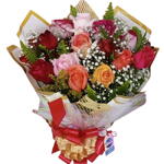 Ofereça este lindo buquê com 12 Rosas Coloridas e radiantes, levando alegria para um dia mais que especial. Entregue com embalagem e laço conforme disponibilidade mantendo a beleza e elegância deste exepcional.