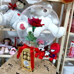 laço - 1 un. rosa artificial - 1 un. balão bubble - 1 un. ferrero rocher de 8 - 1 un.