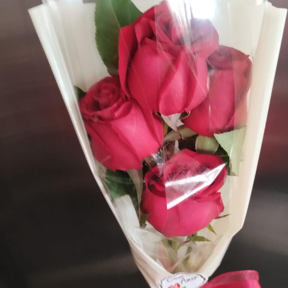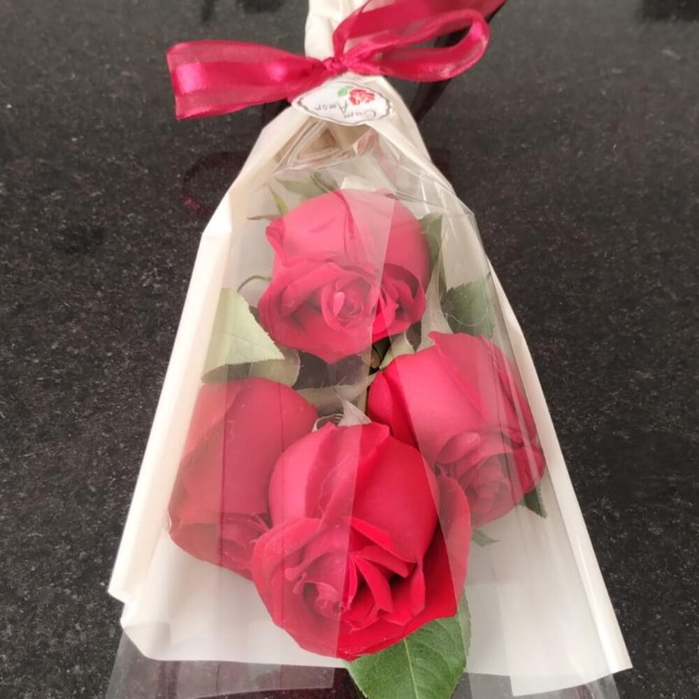 Este buquê diverso mistura clássico e contemporâneo com suas belas quatro rosas, cuidadosamente embaladas e finalizadas com um laço elegante. Um presente perfeito para ocasiões especiais ou simplesmente para alegrar o dia de alguém.
