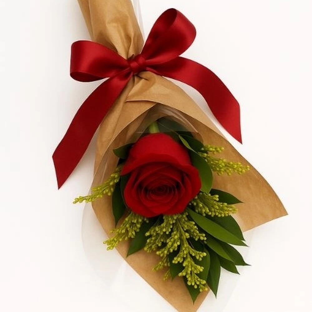 Imbuído da beleza atemporal e do romantismo, este buquê se destaca pela presença de uma rosa colombiana vermelha, meticulosamente selecionada por seu apelo visual irresistível. Banhado em uma mescla harmoniosa de folhagens frescas, o arranjo floresce ainda mais. Cada detalhe é envolto com carinho em uma embalagem sofisticada para exaltar a proposição da beleza natural dentro. Embora o laço não esteja incluído, a estética atraente deste produto por si só é capaz de enamorar qualquer um que o receba.