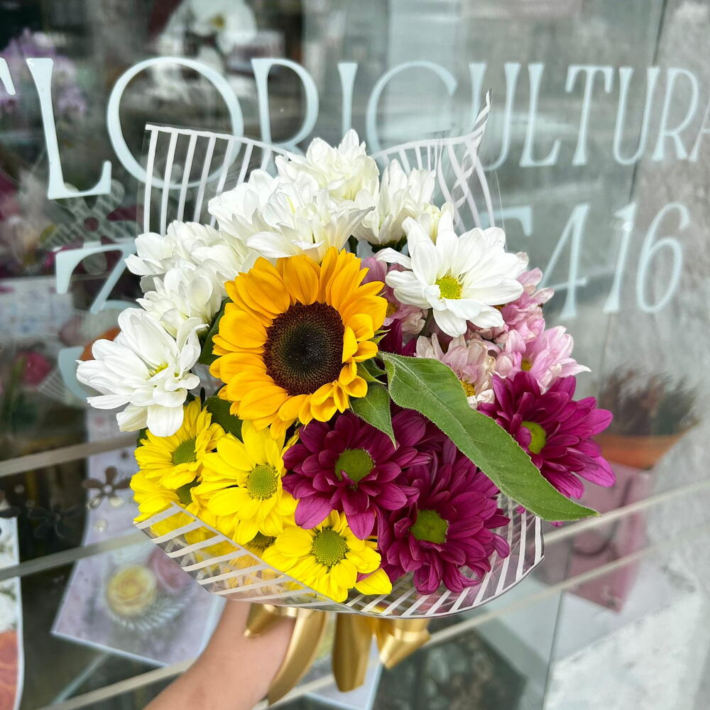 Este magnífico arranjo de Flores do Campo exibe a vivacidade de girassol que se destaca com a sua bela cor, complementada por hastes de flores silvestres que adicionam charme e diversidade estética. Acompanhado por uma embalagem de design exclusivo e amarrado juntos com um elegante laço, este buquê representa o amor pela natureza em sua forma mais pura e é perfeito para presentear em qualquer ocasião.