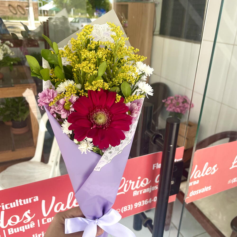 Este belo bouquet é composto por uma única, mas vibrante gerbera, cuidadosamente escolhida para representar amor e admiração. Cercada por folhagens frescas, esta flor encantadora entrega um significativo contraste verde em nossa embalagem de designer cuidadosamente selecionada, finalizada com um laço elegante. Este bouquet é a opção perfeita para presentear e expressar seus sentimentos em qualquer ocasião. Aprecie este design cuidadosamente orquestrado e apaixone-se por cada detalhe!