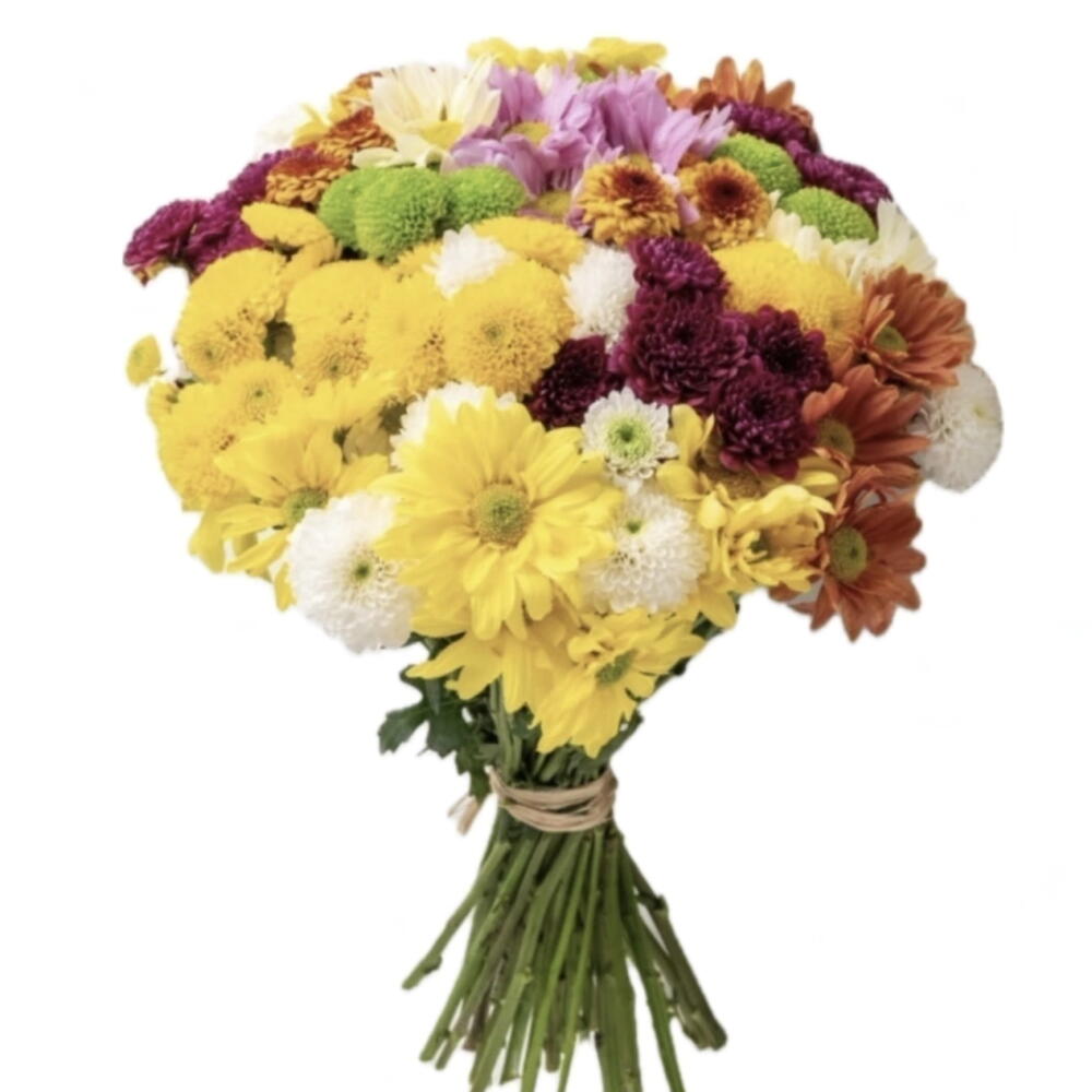 Este produto é um atraente buquê de margaridas coloridas, cuidadosamente arranjado para celebrar ocasiões especiais ou simplesmente para alegrar o dia de alguém. Cada buquê inclui um delicado laço para dar um toque final perfeito. Esta impressionante peça floral é uma maneira ideal de expressar o seu carinho e admiração.