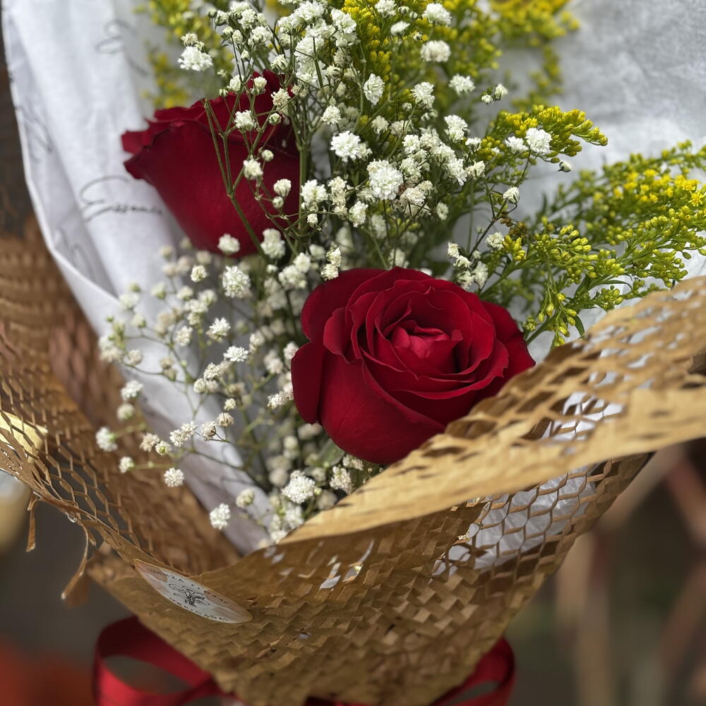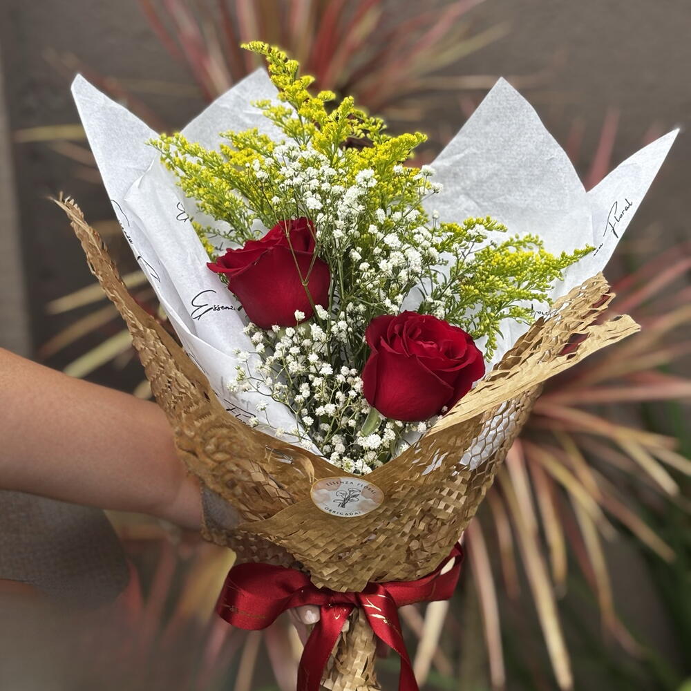 Este encantador buquê é a expressão perfeita do amor e da admiração. Composto por duas lindas rosas cuidadosamente selecionadas, realçadas por uma unidade de folhagens e complementos que adicionam um toque de elegância e sofisticação. O conjunto é habilmente embalado em uma embalagem de alta qualidade e embelezado com um laço para criar um presente verdadeiramente memorável. A cor das rosas podem variar de acordo com a disponibilidade e o gosto do cliente.
