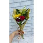 Uma combinação cheia de vida e elegância, unindo a energia radiante do girassol com a delicadeza das rosas. Embalado em papel kraft para um toque rústico e sofisticado, esse ramalhete é perfeito para presentear com carinho e iluminar qualquer momento especial.