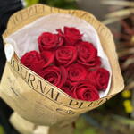 Este buquê encantador composto por 10 rosas vermelhas luxuriantes é a manifestação perfeita do amor e da paixão. Cada rosa é cuidadosamente arranjada e envolvida numa folha de papel coreano especial, acentuando a sua beleza natural e riqueza de cores. Além disso, um laço personalizado adiciona um toque final elegante, tornando-o a escolha perfeita para ocasiões especiais ou simplesmente para alegrar o dia de alguém.