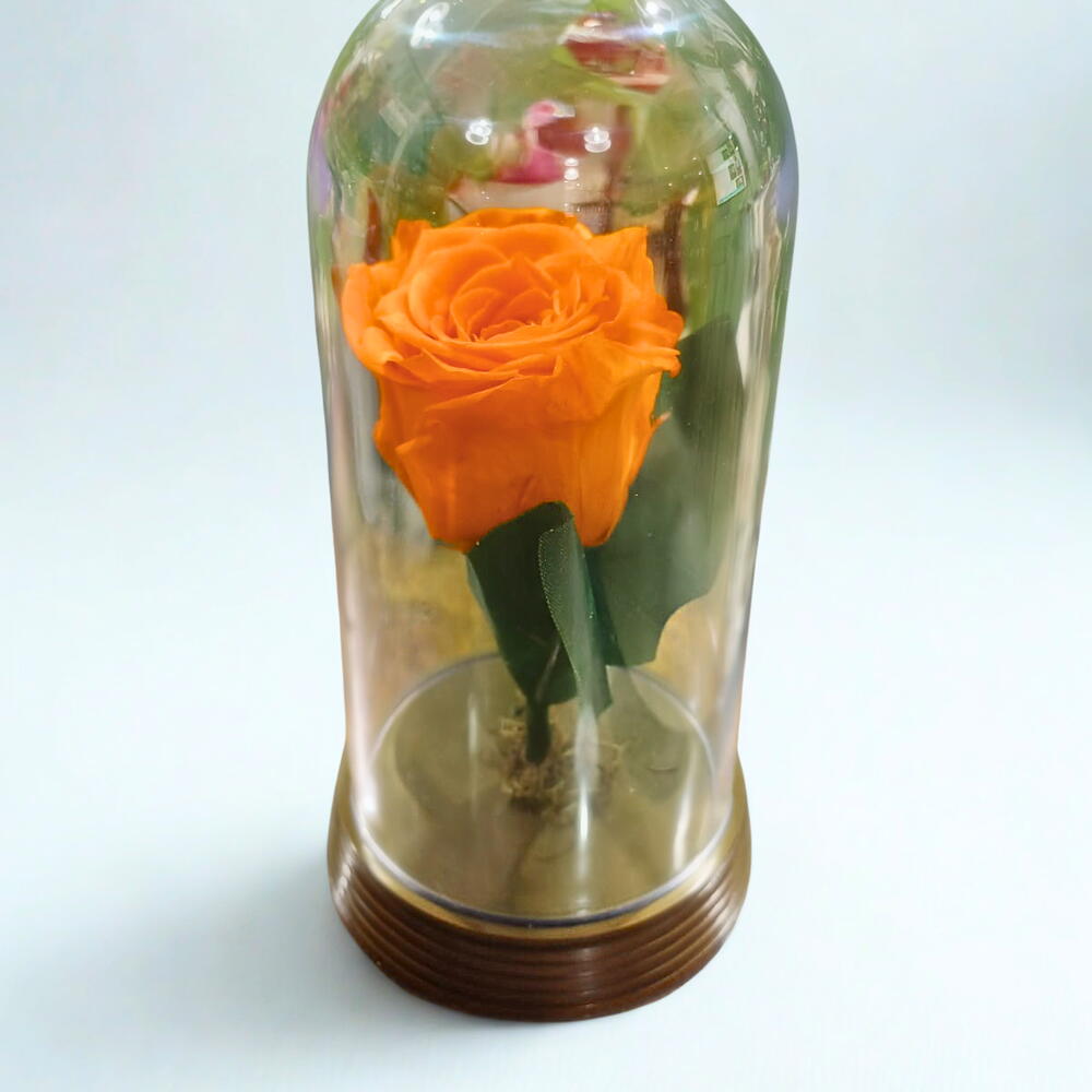Encante-se com a Rosa Encantada - LARANJA CLARA, uma obra de arte da natureza, cuidadosamente preservada e apresentada em uma cúpula de acrílico de alta qualidade. Esta rosas, é um verdadeiro espetáculo visual, um símbolo de amor e beleza eternos