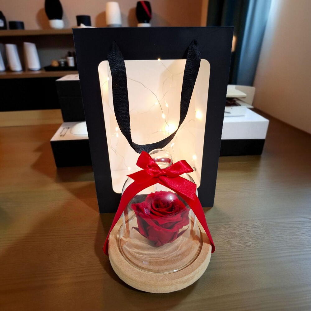 “A Rosa Encantada é poesia preservada no tempo. Uma rosa natural, cuidadosamente tratada para durar anos, protegida sob uma cúpula de vidro que dá aquele ar de magia e eternidade. É o símbolo perfeito de um amor que não desbota, de memórias que ficam, de gestos que atravessam o tempo. Um presente que fala por si: intenso, elegante e inesquecível.”