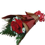 rosa vermelha - 1 un. embalagem - 1 un. laço - 1 un. complemento em flores do campo - 1 un.