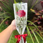 Este buquê é composto por uma única rosa vermelha encantadora, apresentada com folhagens elegantes. Embalado em uma requintada embalagem decorada e arrematada com um laço, é o presente perfeito para expressar seus sentimentos mais profundos. O charme simples, mas clássico desta peça la torna uma escolha perfeita para qualquer ocasião.