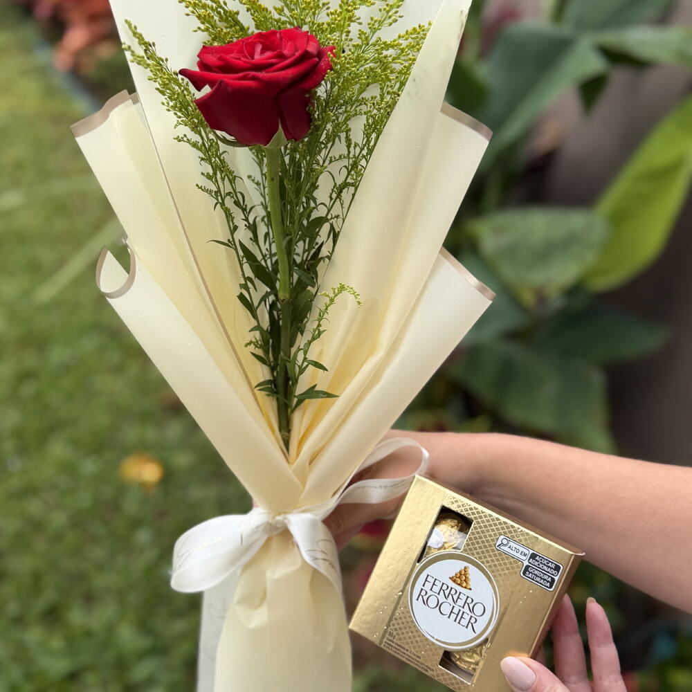 Este kit de presente bem elaborado contém uma luxuosa Rosa Íris, cuidadosamente embalada em uma embalagem especial que destaca sua beleza extraordinária, um elegante laço e quatro deliciosos chocolates Ferrero Rocher. É a combinação perfeita para transformar qualquer momento em algo realmente especial. Ideal para surpreender quem você ama em ocasiões especiais ou simplesmente para mostrar seu carinho. Garanta já o seu!