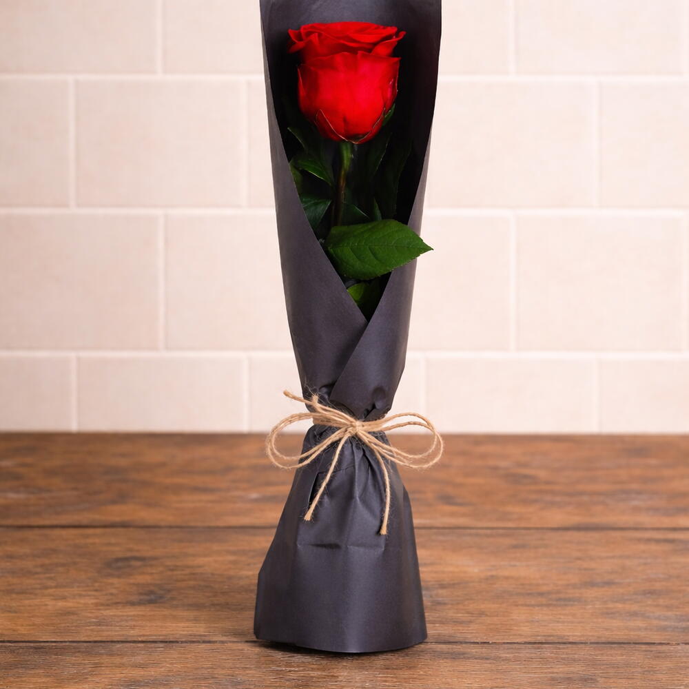 Este arranjo de flores apresenta uma única Rosa Vermelha, simbolizando amor e paixão, fazendo dele a escolha perfeita para momentos românticos. A rosa é cuidadosamente selecionada para garantir sua beleza e frescor. Sua cor vibrante e intensa transmite sentimentos profundos e é capaz de expressar o amor mais sincero. Um presente verdadeiramente encantador para ocasiões especiais.