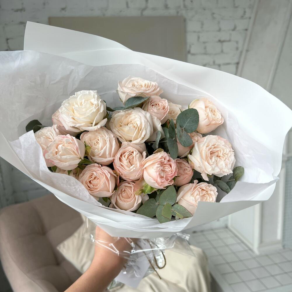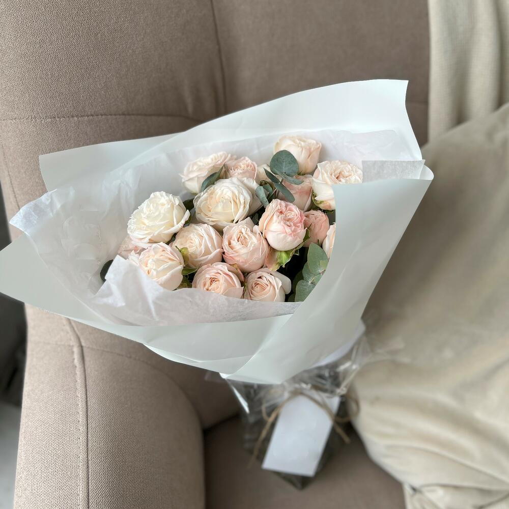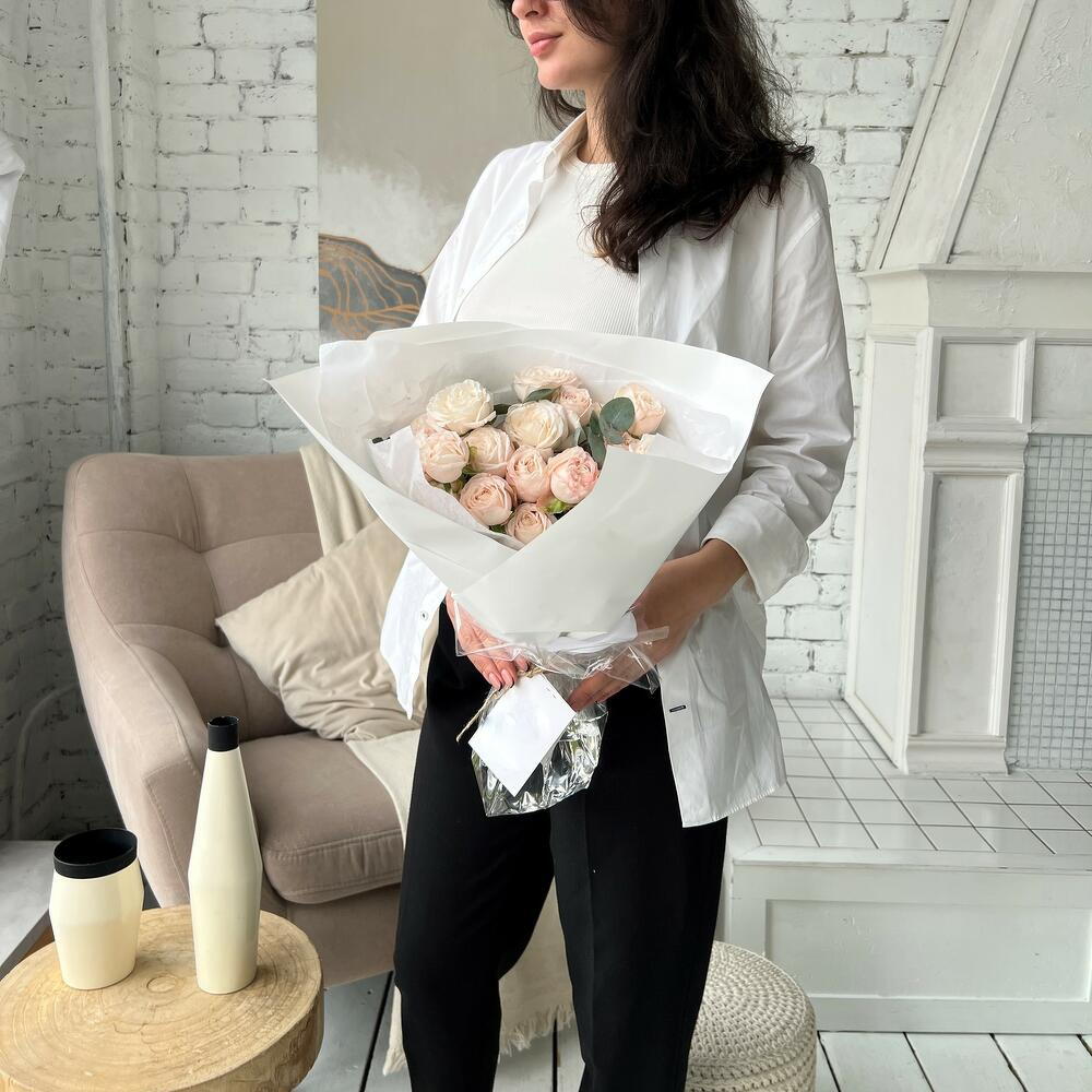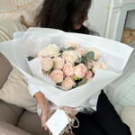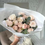embalagem - 1 un. rosa peônia spray bombastic - 15 un. laço em cetim - 1 un.