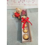rosa - 1 un. embalagem - 1 un. chocolates - 5 un. laço - 1 un. mini pelucia - 1 un.