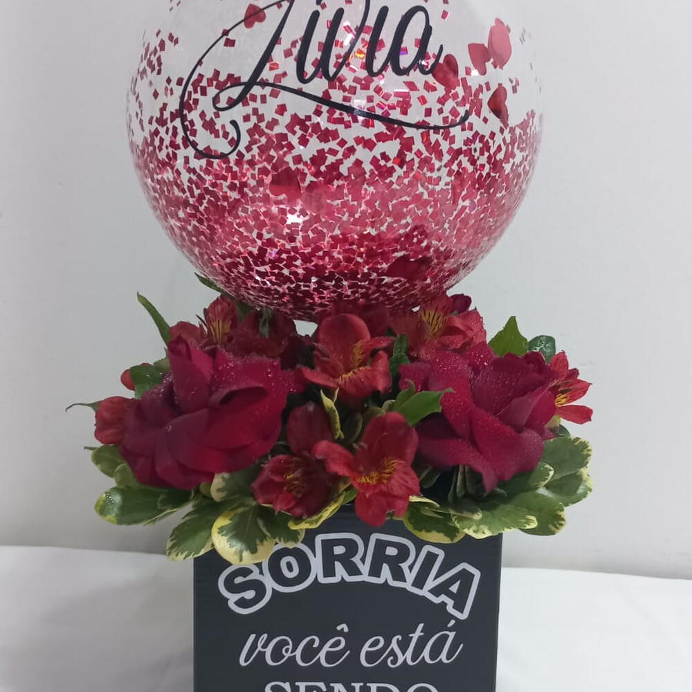 Este maravilhoso Box de Flores é uma escolha perfeita para expressar seus sentimentos por alguém especial. Composto por uma caixa quadrada personalizada, um arranjo de flores naturais mistas e um balão bubble 9 personalizado, este presente certamente fará a diferença no dia de qualquer pessoa. Personalize do jeito que desejar para tornar o presente ainda mais especial. Entre em contato conosco e descubra as infinitas possibilidades para fazer o seu presente se destacar!