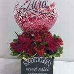 arranjo de flores naturais mistas - 1 un. balão bubble 9 personalizado (entre em contato com a loja e personalize seu presente do jeito que desejar) - 1 un. box quadrada personalizada - 1 un.